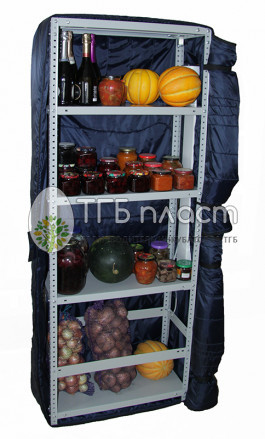 «Балконный погребок-стеллаж ТГБ-300» представляет собой сборно-разборную конструкцию в виде стеллажной системы с 4-мя полками, утепленной трехслойным материалом. Подходит для хранения овощей, фруктов, консервации, напитков в неотапливаемых помещениях при температуре окружающей среды -40…+5 °C. При этом внутри термошкафа поддерживается постоянная температура 0…+7 °C.